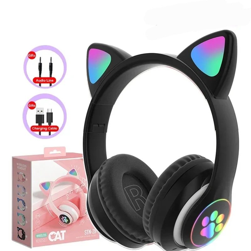 האוזניות מגיעות עם כבל טעינה , מעוצבות בצורת אוזניי חתול עם תאורת לד