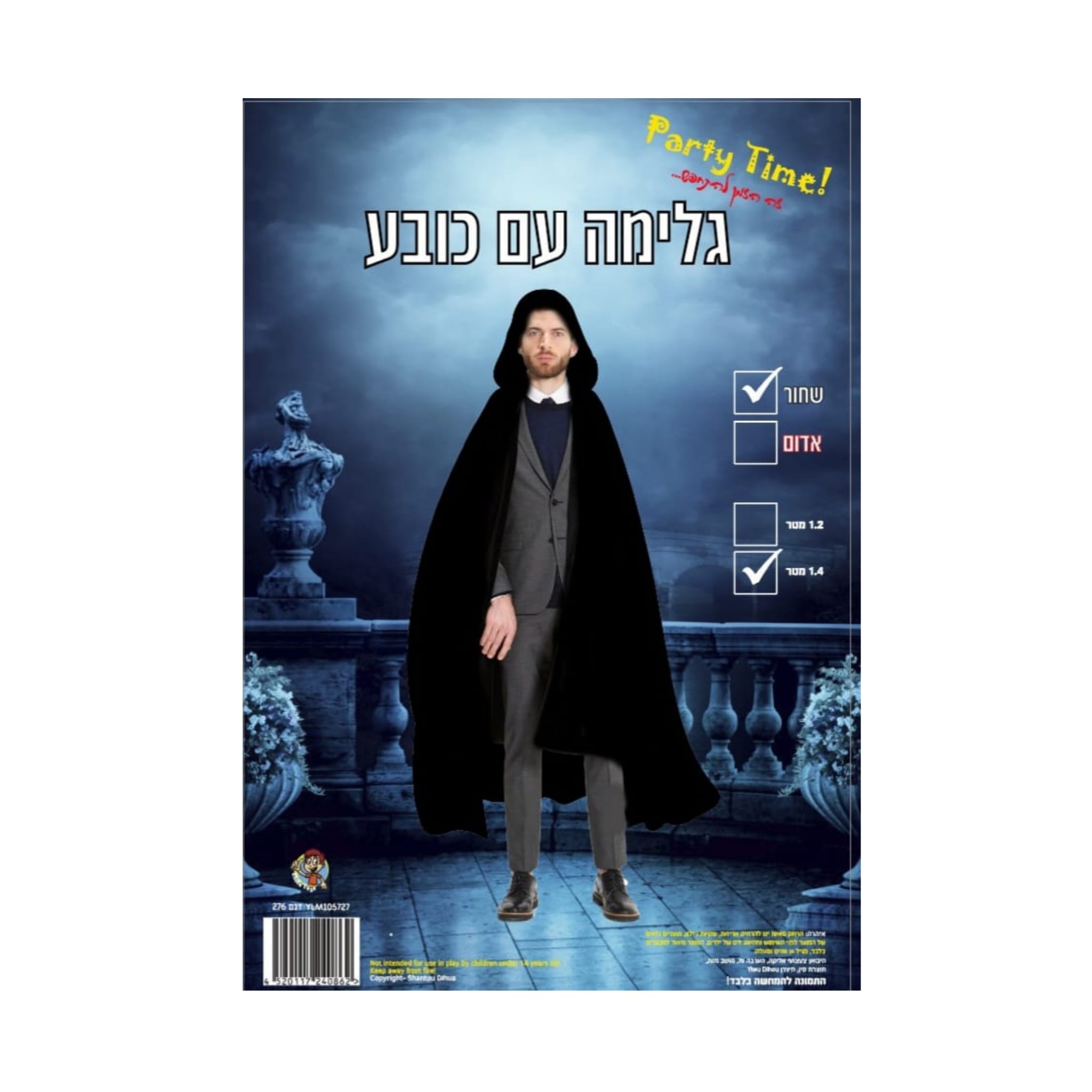 גלימה שחורה עם כובע 1.4 מטר