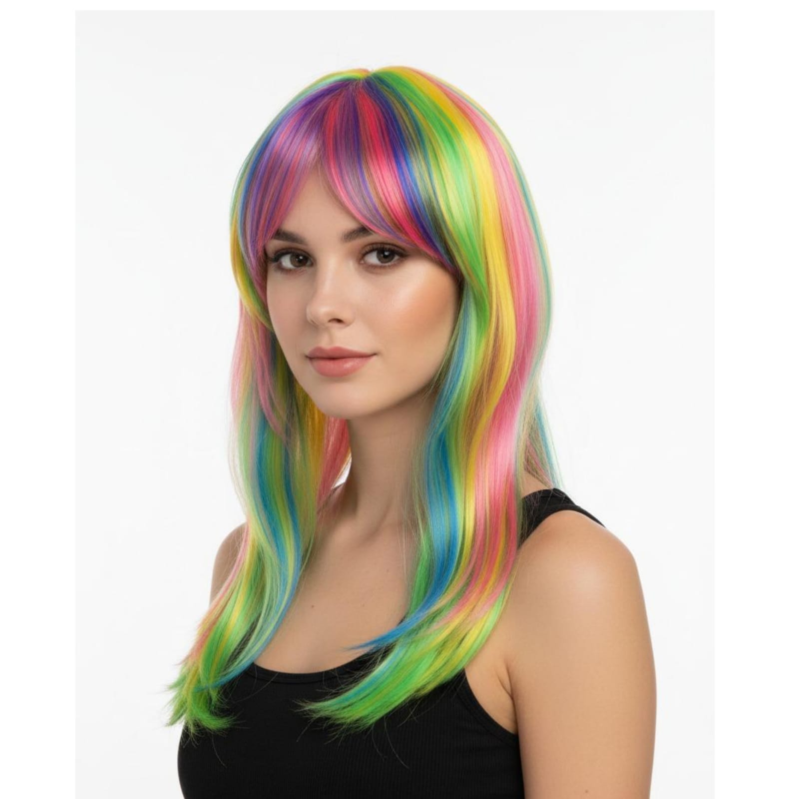 פאה צבעונית ארוכה עם פוני עשויה מסיבים סינתטיים עמידים
