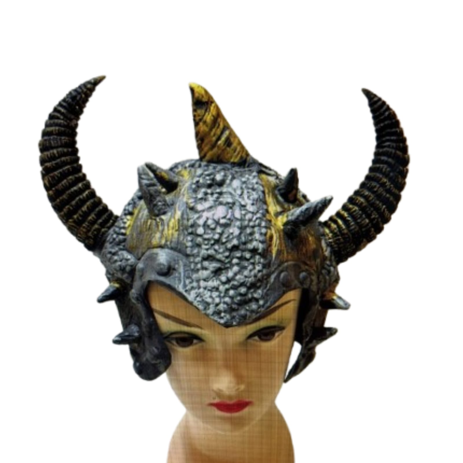 קסדה מעוצבת בסגנון לוחם עם קרניים גדולות ומחוספסות